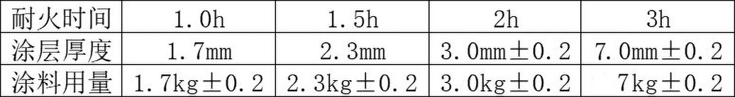 五、耐火時間和涂層厚度及涂料用量參考下表∶